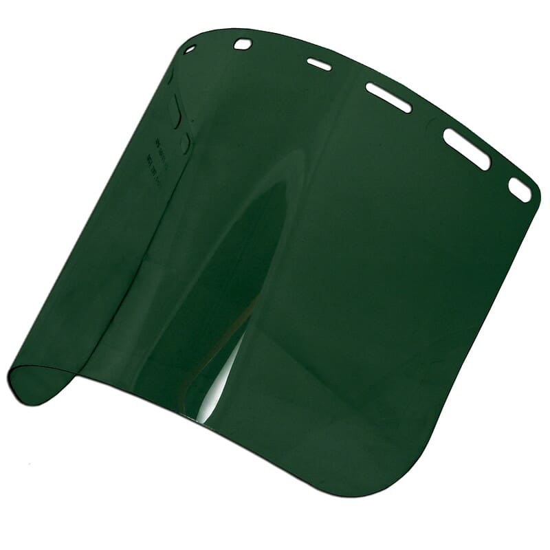 Description: Dark green molded cylinder PETG face shield 7.75″ x 15.5″ x 0.040″ – ship flat in protective film