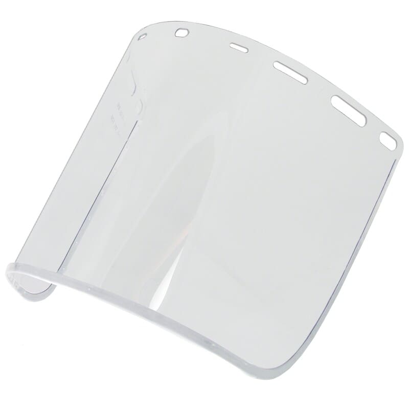 Description: Clear PETG metal banded cylindrical face shield – 9″ x 15.5″ x .040″ – ship flat in protective film – Does not fit the E20 carrier – Does not meet ANSI/ISEA Z87.1 – Impact