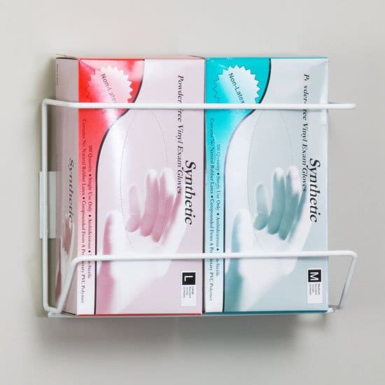 Glove Box Holder Vertical Mounted 2-Box Capacity White 3-3/4 X 8 X 11-1/4 Inch Coated Wire