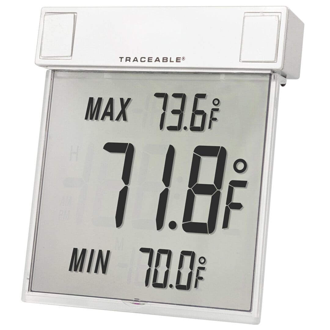 Digital Thermometer Traceable® Big-Digit See-Thru™ Fahrenheit / Celsius -13° to +158°F (-25° to +70°C) Internal Sensor Multiple Mounting Options Battery Operated