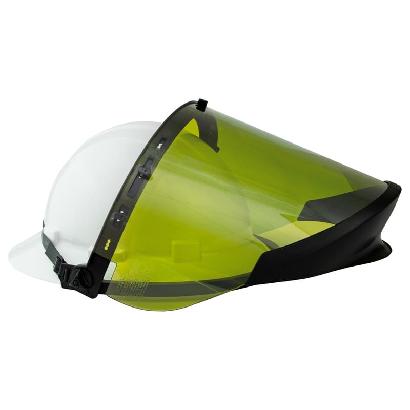 Description: Head and Face Arc Protection Kit CU-ARC-7-BASIC for PPE Risk Category 2. -Kit includes: Americana® Full Brim hard hat in white arc shield and visor bracket