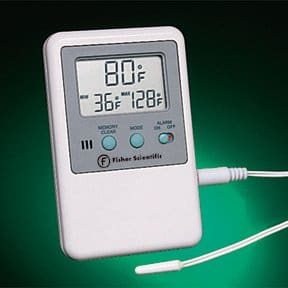 Digital Thermometer with Alarm Fisherbrand™ Traceable® Fahrenheit / Celsius -58° to +158°F (-50° to +70°C) Short External Sensor Multiple Mounting Options Battery Operated
