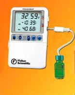 Refrigerator / Freezer Thermometer Fisherbrand™ Traceable® Fahrenheit -58° to +158°F (-50° to +70°C) Bottle Probe Desk / Wall Mount Battery Operated