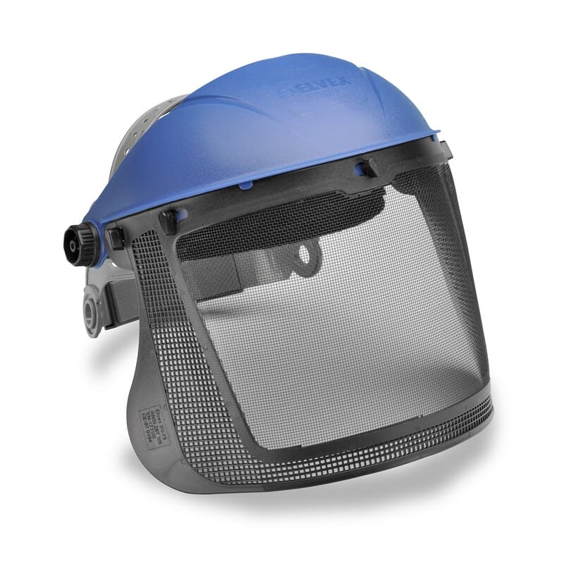 Materials: Headgear system with steel mesh screen and brow guard – Pin lock suspension and fabric sweatband; Lens : Mesh metal | Frame Support : Elastic – PEBD
