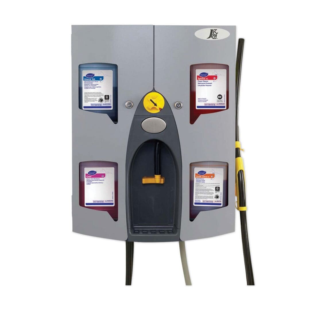 Chemical Dispenser Diversey™ J-Fill® QuattroSelect® Gray Powder Coated Steel Push Button Wall Mount