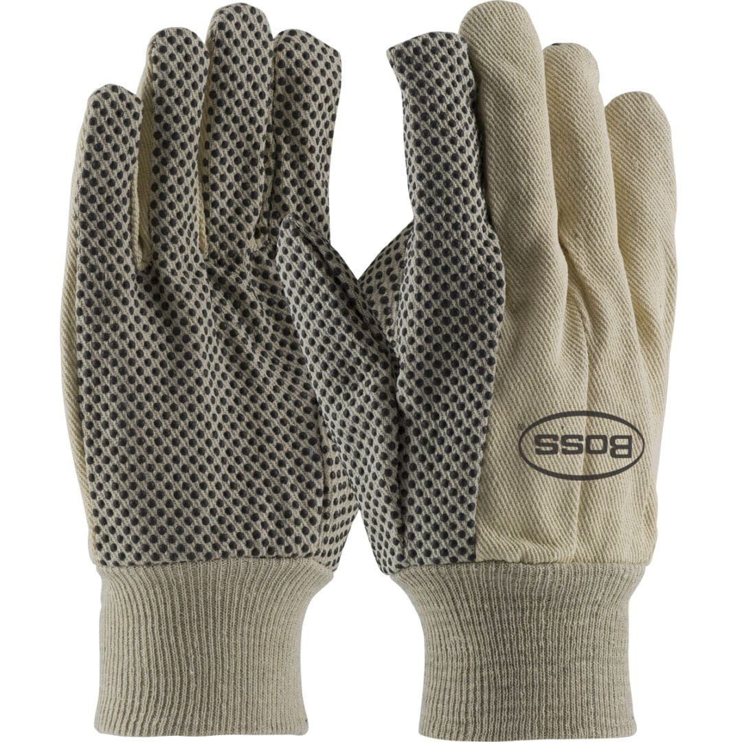 Natural cotton canvas keeps hands cool and protected|Knit Wrist helps prevent dirt and debris from entering the glove|Clute cut provides a roomy fit|Straight thumb increases comfort in closed-fisted work|PVC dots provide enhanced grip and extra cut and abrasion resistance