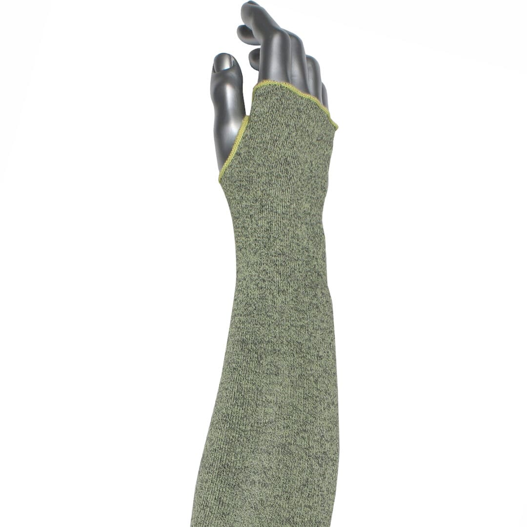 Proprietary ATA® HideAway™ FR sleeve is lightweight and still offers good cut protection and ANSI level 4 flame resistance|Aramid fiber blend is inherently flame resistant, sleeves can withstand heat up to 640° F (337°C) without supporting a flame|Lightweight, seamless construction for a soft and comfortable feel|HideAway™ color helps to hide dirt and keep sleeves looking newer longer |Good washability can be washed in soap and water or dry cleaned|Available with or without thumb-hole|Made in the USA