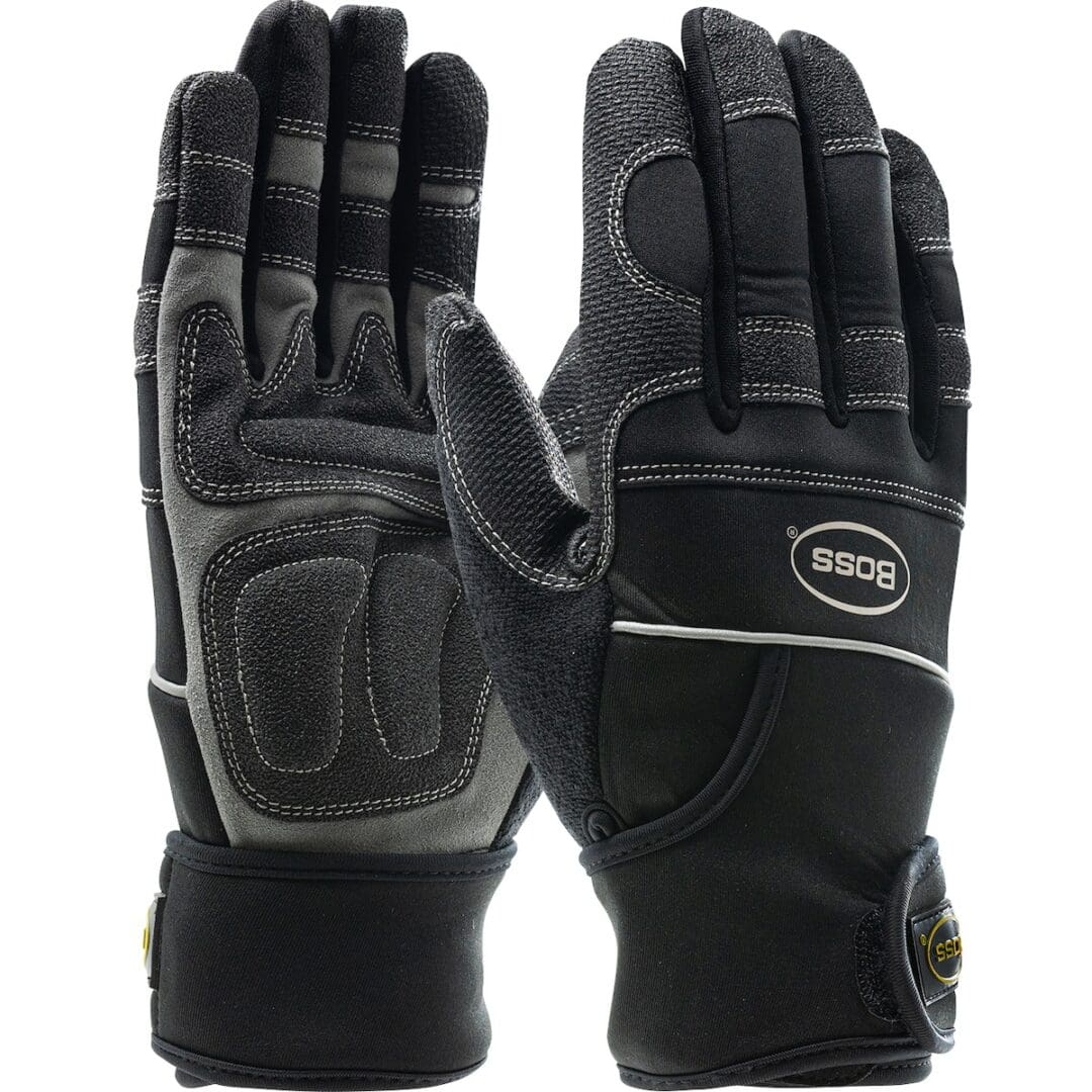 Synthetic leather palm enhances grip in dry and light oil applications while providing dexterity|PVC sandy grip on palm, thumb crotch, upper knuckle and fingertips provides an enhanced grip and extra cut/abrasion resistance|NeoRubber anti-vibration pads absorb and dampen shock|Neoprene/Nylon fabric back for breathability and comfort|Micro cotton thumb for comfort|Reflective piping across glove back makes this product easy to see in low-light applications|Lycra fabric binding for strength an durability|Neoprene/Nylon wraparound wrist strap with a double hook & loop closure for a secure fit|Launderable for extended life and to reduce replacement costs