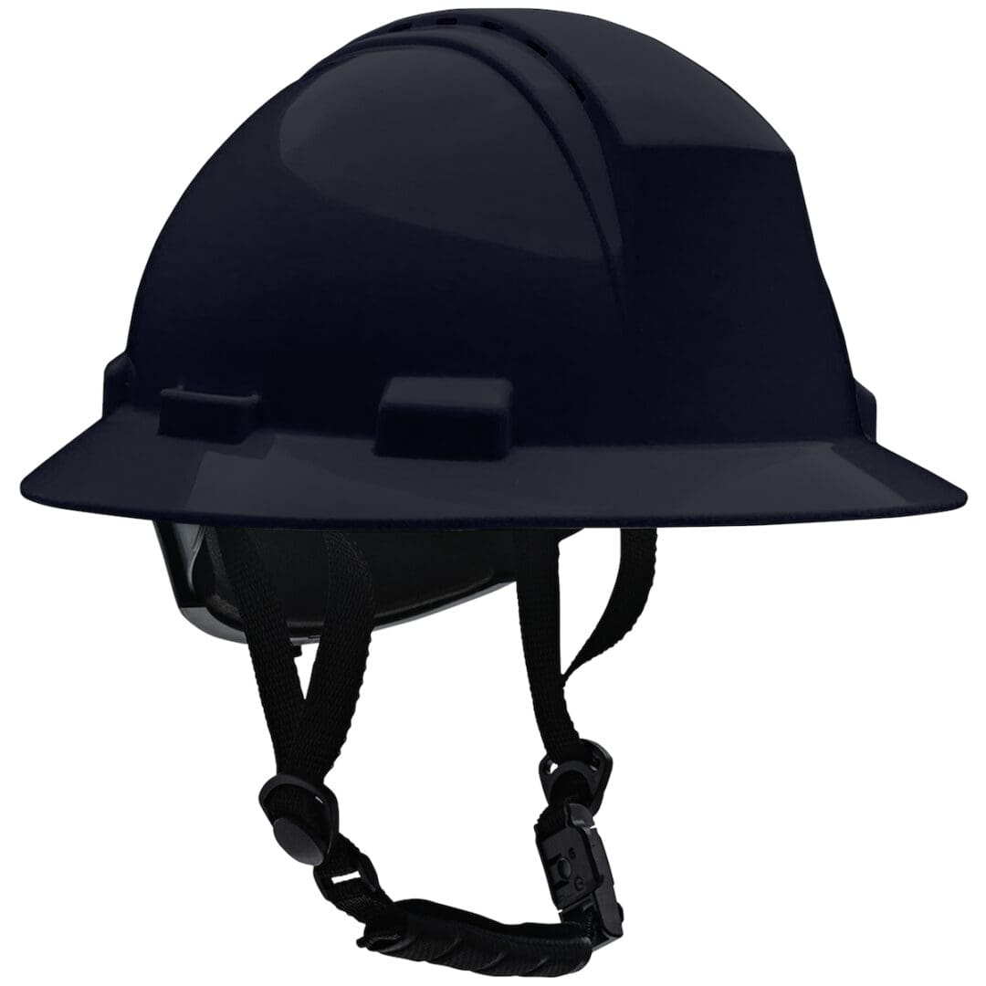Type II Full Brim Safety Helmet with HDPE Shell, 4-Point Textile Suspension, Wheel Ratchet Adjustment Vented, With 4-Point Chinstrap