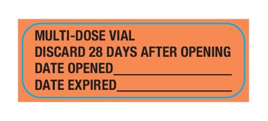 LABEL, MULTI-DOSE VIAL FLOURESCENT ORG 1.5″X0.5″ (615/RL)